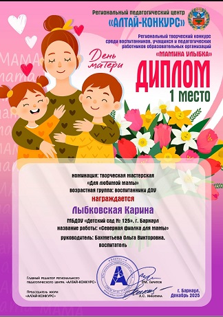 Региональный творческий конкурс среди воспитанников и педагогических работников образовательных организаций "Мамина улыбка"